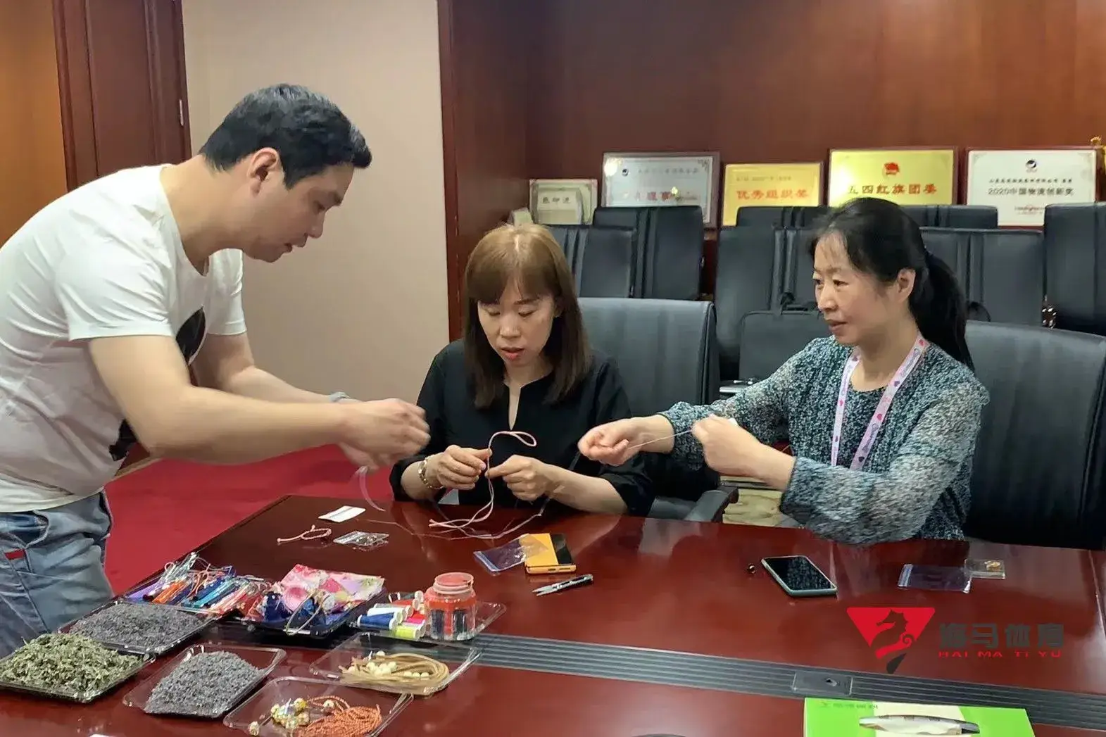 制作前,333体育的手工老师首先介绍了端午的习俗以及端午节制作香囊与五彩绳的来历,让大家在活动前了解端午的民俗文化,手工老师将精心准备的有着美好寓意的五色彩绳、色彩绚丽的香包袋以及清香的艾草薰衣草,送到职员手中,携手制作香包和五彩绳。